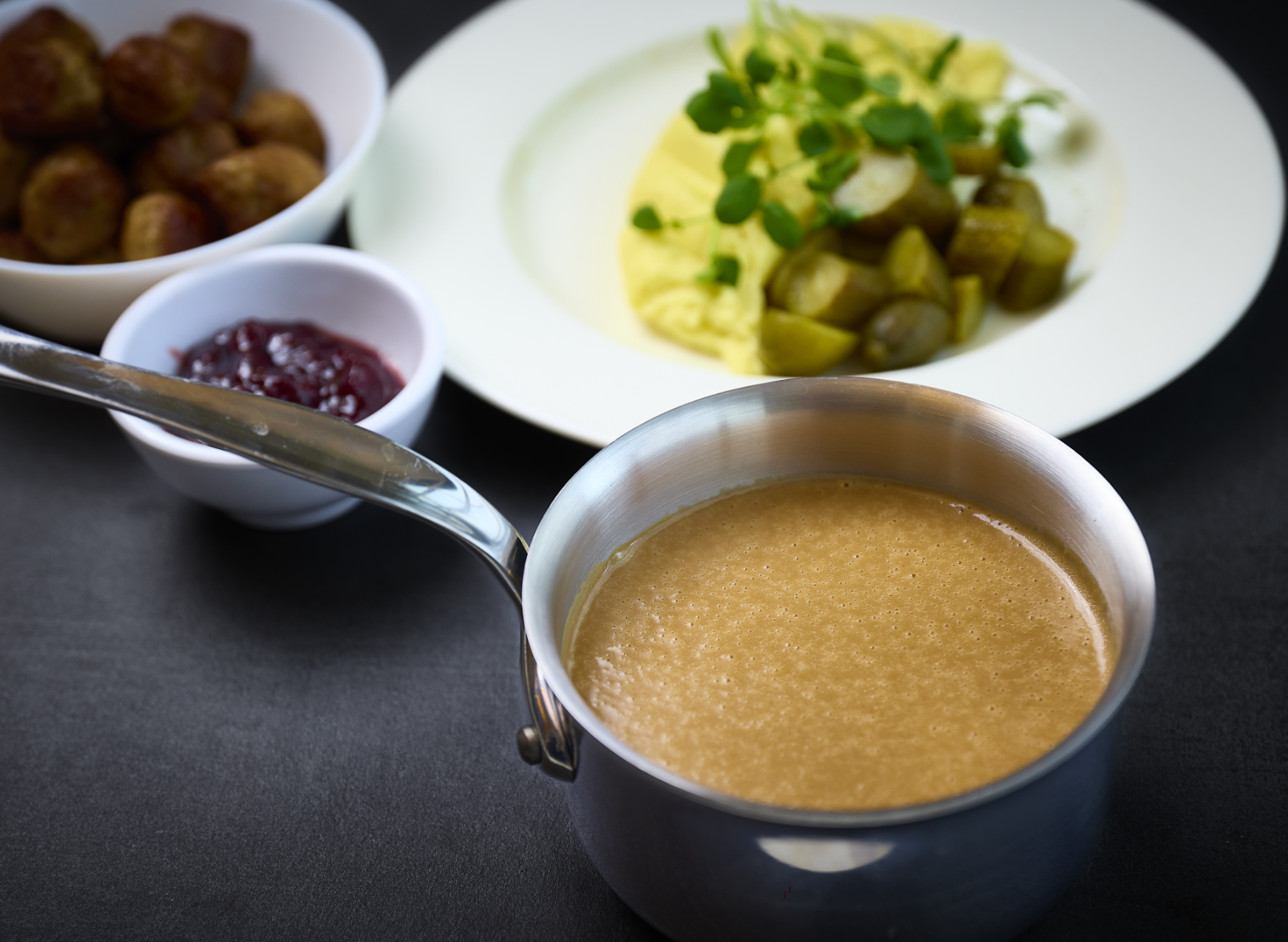 Die OSCAR® Banquet Sahnesauce wird nach einem klassisch-schwedischen Rezept hergestellt und bietet vollmundiges, aromatisches Kalbfleischaroma. Die cremige Konsistenz und der würzige Geschmack machen die Sauce ideal für traditionelle Hausmannskost wie Fleischbällchen, Hacksteaks und falschen Hasen.